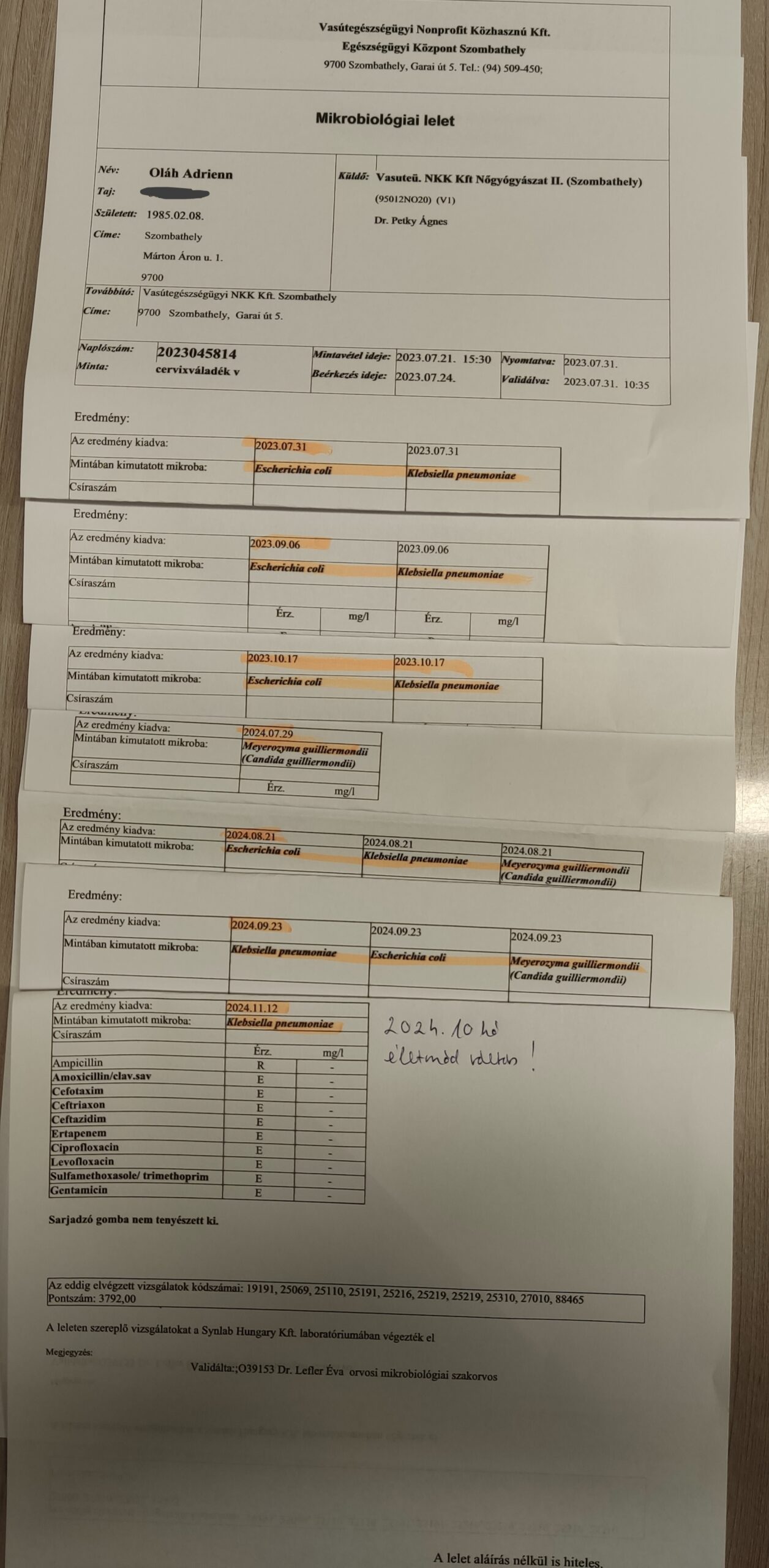 Utolsó 7 mikrobiológiai leletem, egyik gyógyszert kaptam a másik után, de hiába, aztán életmódot váltottam….azóta hál Istennek nincs problémám, immár 1 éve !
